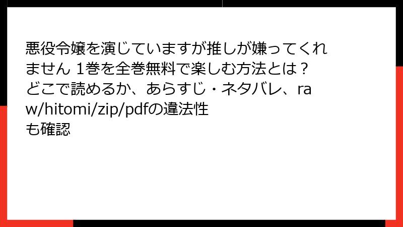 悪役令嬢を演じていますが推しが嫌ってくれません 1巻を全巻無料で楽しむ方法とは?どこで読めるか、あらすじ・ネタバレ、raw/hitomi/zip/pdfの違法性も確認