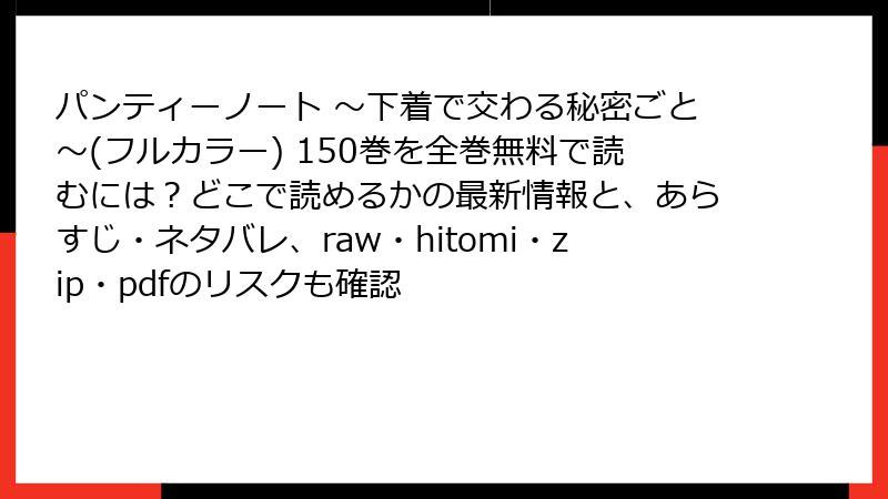 パンティーノート ~下着で交わる秘密ごと~(フルカラー) 150巻を全巻無料で読むには?どこで読めるかの最新情報と、あらすじ・ネタバレ、raw・hitomi・zip・pdfのリスクも確認
