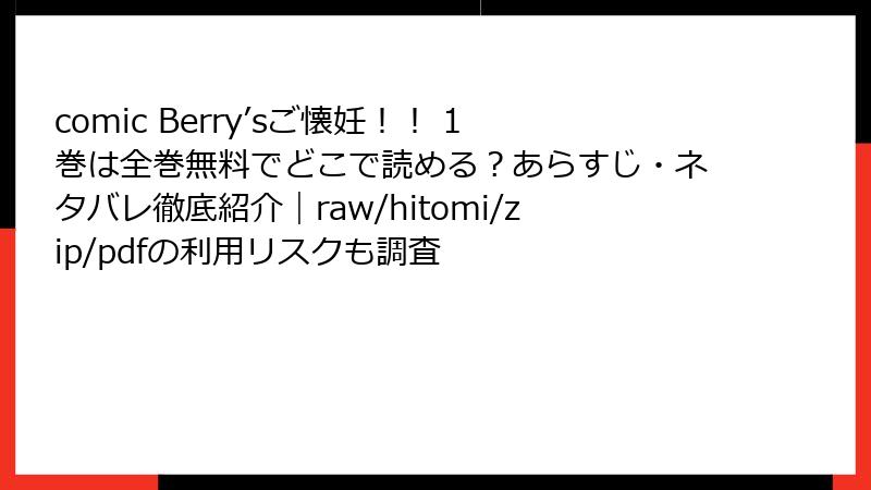 comic Berry’sご懐妊!! 1巻は全巻無料でどこで読める?あらすじ・ネタバレ徹底紹介|raw/hitomi/zip/pdfの利用リスクも調査