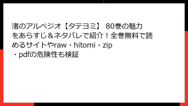 人気のBL漫画『渚のアルペジオ【タテヨミ】』を、raw、hitomi、zip、pdf、漫画バンクなどの海賊版サイトで無料で読もうとする人は少なくありません。しかし、そんな手軽さの裏側には、深刻なリスクが潜んでいます。この記事では、海賊版サイトを利用する際の法的、セキュリティ、品質、倫理的な問題を詳しく掘り下げます。安易なアクセスがもたらす代償を知り、正規ルートでの読書を検討しましょう。ネタバレなしで、純粋にリスクに焦点を当てます。