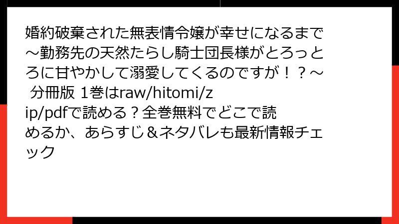 - 婚約破棄された無表情令嬢が幸せになるまで~勤務先の天然たらし騎士団長様がとろっとろに甘やかして溺愛してくるのですが!?~ 分冊版 1巻