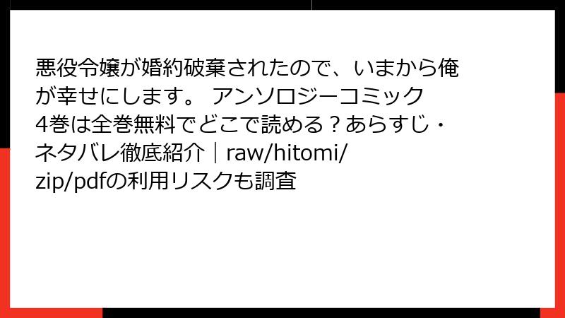 悪役令嬢が婚約破棄されたので、いまから俺が幸せにします。 アンソロジーコミック 4巻は全巻無料でどこで読める?あらすじ・ネタバレ徹底紹介|raw/hitomi/zip/pdfの利用リスクも調査