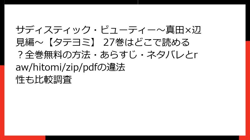 海賊版サイトで「サディスティック・ビューティー~真田×辺見編~【タテヨミ】 27巻」を読むリスク徹底解説