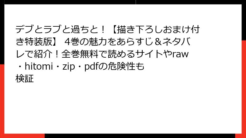 デブとラブと過ちと!【描き下ろしおまけ付き特装版】 4巻の魅力をあらすじ&ネタバレで紹介!全巻無料で読めるサイトやraw・hitomi・zip・pdfの危険性も検証