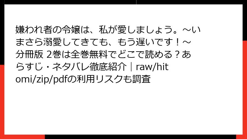 嫌われ者の令嬢は、私が愛しましょう。~いまさら溺愛してきても、もう遅いです!~ 分冊版 2巻は全巻無料でどこで読める?あらすじ・ネタバレ徹底紹介|raw/hitomi/zip/pdfの利用リスクも調査