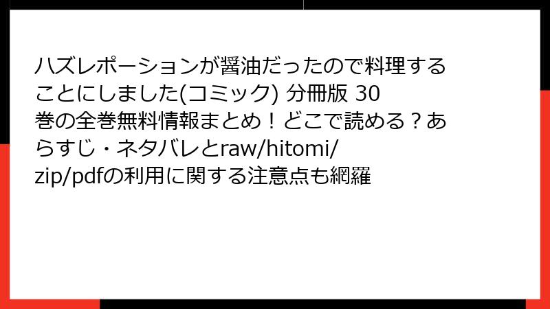ハズレポーションが醤油だったので料理することにしました(コミック) 分冊版 30巻の全巻無料情報まとめ!どこで読める?あらすじ・ネタバレとraw/hitomi/zip/pdfの利用に関する注意点も網羅