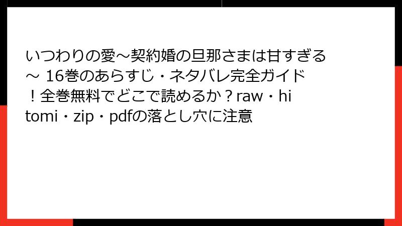 いつわりの愛~契約婚の旦那さまは甘すぎる~ 16巻のあらすじ・ネタバレ完全ガイド!全巻無料でどこで読めるか?raw・hitomi・zip・pdfの落とし穴に注意