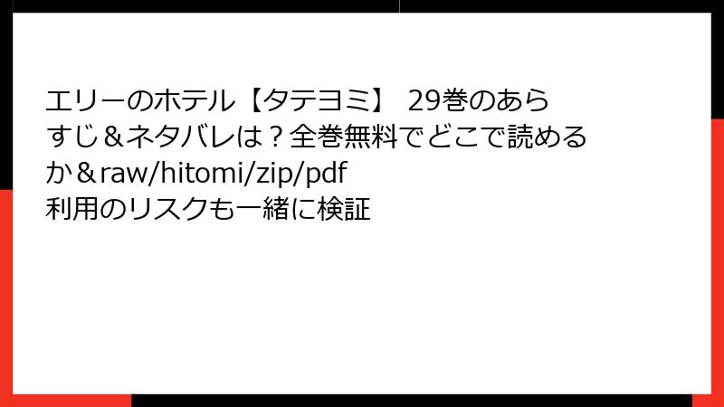 - エリーのホテル【タテヨミ】 29巻を海賊版サイトで読むリスク