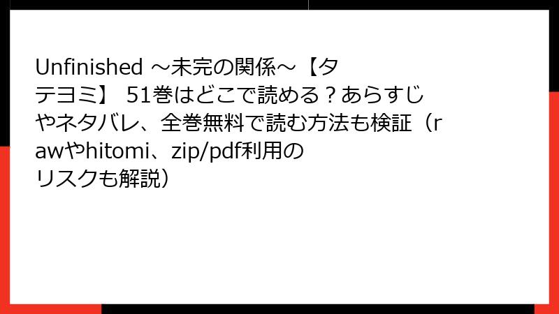 Unfinished ~未完の関係~【タテヨミ】 51巻はどこで読める?あらすじやネタバレ、全巻無料で読む方法も検証(rawやhitomi、zip/pdf利用のリスクも解説)