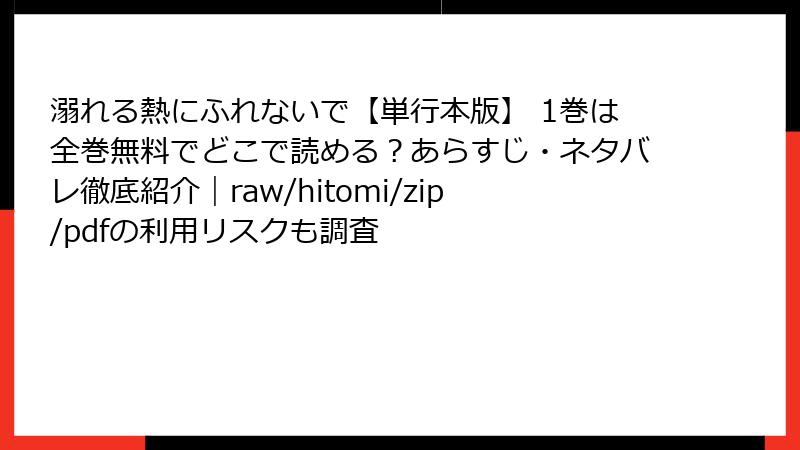 rawやhitomiなどの海賊版サイトは、法的・セキュリティ・プライバシーの三重苦に加え、品質の低さで満足感を与えません。「溺れる熱にふれないで」のような魅力的な作品は、作者の汗の結晶。リスクを背負うより、合法ルートで支えましょう。あなたの選択が、漫画業界の未来を明るくします。