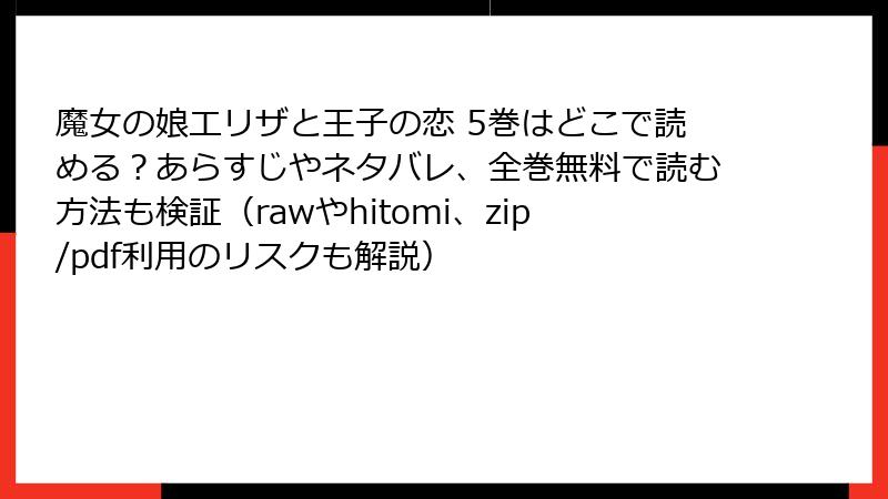 魔女の娘エリザと王子の恋 5巻はどこで読める?あらすじやネタバレ、全巻無料で読む方法も検証(rawやhitomi、zip/pdf利用のリスクも解説)