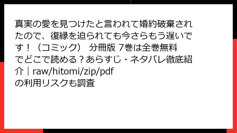 - 真実の愛を見つけたと言われて婚約破棄されたので、復縁を迫られても今さらもう遅いです!(コミック) 分冊版 7巻