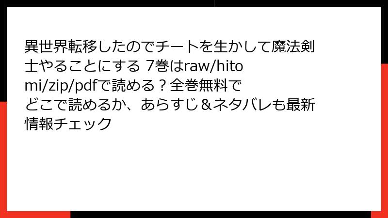 - 異世界転移したのでチートを生かして魔法剣士やることにする 7巻のネタバレ情報