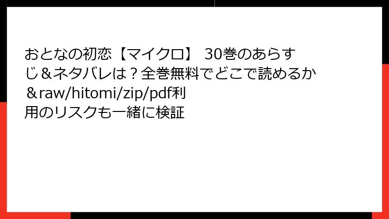 大人の初恋が胸キュン必至の人気作、おとなの初恋【マイクロ】。星森柚稀先生の繊細な恋愛描写が魅力のこの作品、33巻まで続く長編です。電子書籍版は複数のサービスで配信されており、無料試し読みやセールも充実。2025年11月現在、指定のプラットフォームを中心に、どこで読めるかを詳しくまとめました。自分に合ったサービスを選んで、由莉と清野さんの甘い物語に浸りましょう!