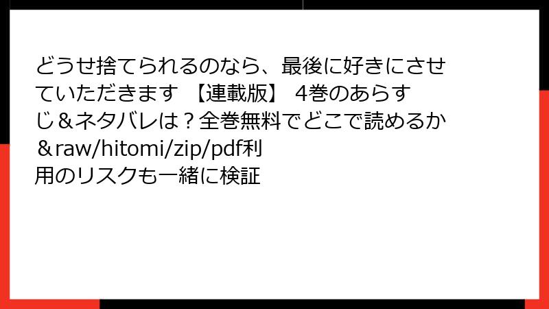 どうせ捨てられるのなら、最後に好きにさせていただきます 【連載版】 4巻のあらすじ&ネタバレは?全巻無料でどこで読めるか&raw/hitomi/zip/pdf利用のリスクも一緒に検証