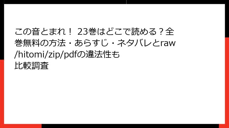 この音とまれ! 23巻はどこで読める?全巻無料の方法・あらすじ・ネタバレとraw/hitomi/zip/pdfの違法性も比較調査