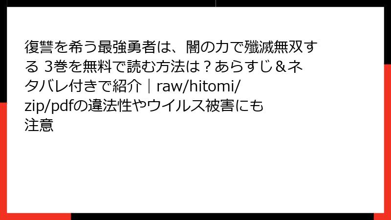 復讐を希う最強勇者は、闇の力で殲滅無双する 3巻を無料で読む方法は?あらすじ&ネタバレ付きで紹介|raw/hitomi/zip/pdfの違法性やウイルス被害にも注意