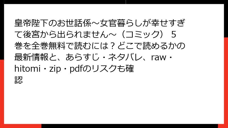 皇帝陛下のお世話係~女官暮らしが幸せすぎて後宮から出られません~(コミック) 5巻を全巻無料で読むには?どこで読めるかの最新情報と、あらすじ・ネタバレ、raw・hitomi・zip・pdfのリスクも確認