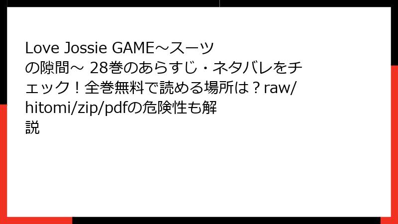Love Jossie GAME~スーツの隙間~ 28巻のあらすじ・ネタバレをチェック!全巻無料で読める場所は?raw/hitomi/zip/pdfの危険性も解説