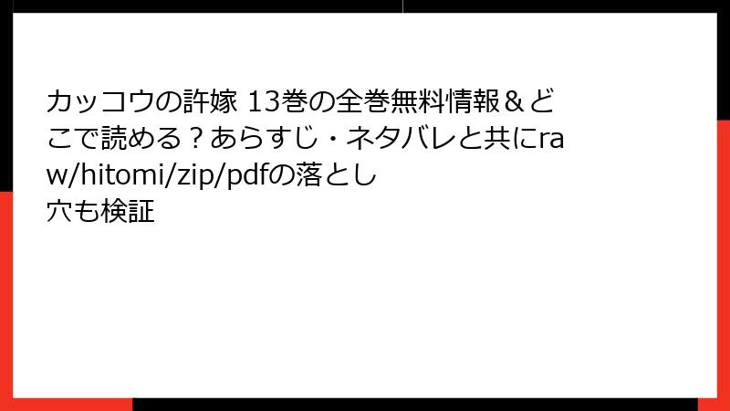 カッコウの許嫁 13巻の全巻無料情報&どこで読める?あらすじ・ネタバレと共にraw/hitomi/zip/pdfの落とし穴も検証