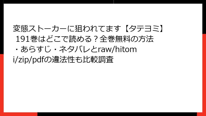 こんにちは、漫画ファン向けのブログへようこそ! 今日は、人気BLウェブトゥーン『変態ストーカーに狙われてます【タテヨミ】』を、raw、hitomi、zip、pdf、漫画バンクなどの海賊版サイトで読むことのリスクを、徹底的に掘り下げてお話しします。この作品は闇要素たっぷりのラブストーリーで魅力的ですが、海賊版を利用するのは絶対おすすめしません。なぜなら、法的・セキュリティ面での危険が山積みだからです。2025年現在、著作権法の改正で利用者側の責任も重くなっています。以下で、具体的なリスクをカテゴリ別に詳しく解説。読み応え満点でお届けしますので、ぜひ最後までご覧ください。