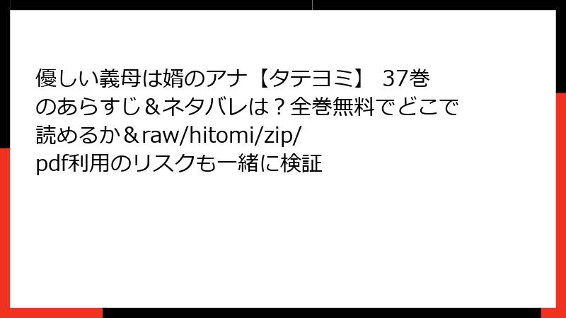 - 優しい義母は婿のアナ【タテヨミ】 37巻の復讐