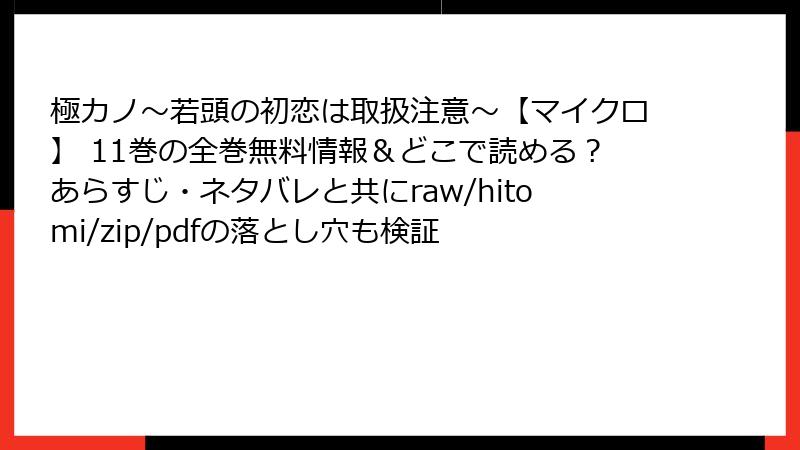 ヤクザ禁断恋のスリル! しがの夷織先生の「極カノ」マイクロ版11巻電子配信。特別編で甘危険増し、コミックシーモアや小学館で予約可能。初恋の牙を電子で。