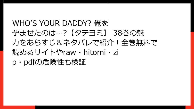 WHO’S YOUR DADDY? 俺を孕ませたのは…?【タテヨミ】 38巻の魅力をあらすじ&ネタバレで紹介!全巻無料で読めるサイトやraw・hitomi・zip・pdfの危険性も検証