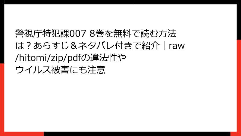 警視庁特犯課007 8巻を無料で読む方法は?あらすじ&ネタバレ付きで紹介|raw/hitomi/zip/pdfの違法性やウイルス被害にも注意