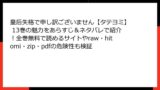 - ダウンロードの危険:zipやpdf形式でファイルを保存すると、明確な違法ダウンロードとして罰金や刑事罰の対象になる可能性が高い。