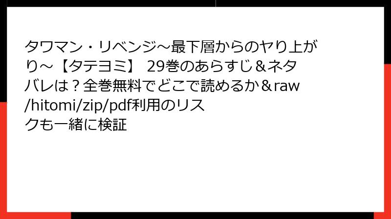 - タワマン・リベンジ~最下層からのヤり上がり~【タテヨミ】 29巻 あらすじ
