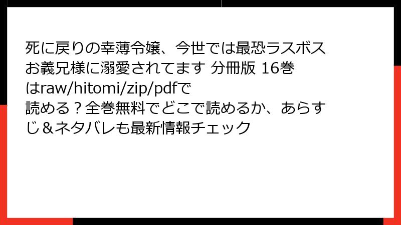 配信サービスの詳細と特徴 心の強さが魅力。 サービス名 配信状況 特典・特徴 コミックシーモア 全巻配信中 無料 BookLive 未配信 – まんが王国 未配信 – eBookJapan 未配信 – Renta! 未配信 – めちゃコミック 未配信 – ピッコマ 未配信 – LINEマンガ 未配信 – おすすめの読み方と注意点