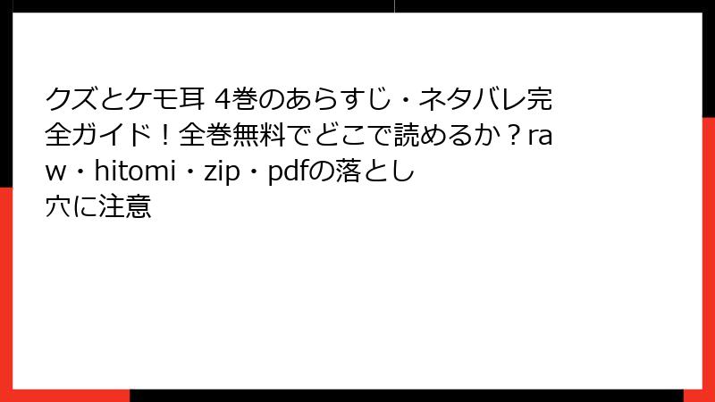 クズとケモ耳 4巻のあらすじ・ネタバレ完全ガイド!全巻無料でどこで読めるか?raw・hitomi・zip・pdfの落とし穴に注意