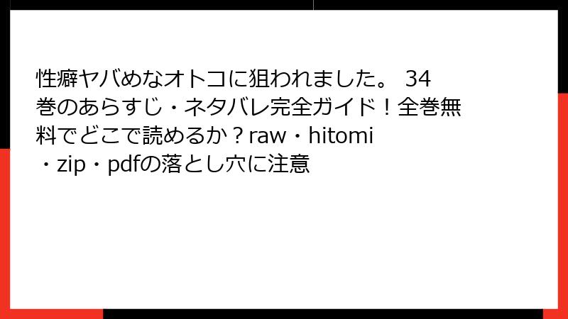 - 性癖ヤバめなオトコに狙われました。34巻をraw/hitomi/zip/pdf/漫画バンクなどの海賊版サイトで読むリスク:法的・セキュリティ面の危険性を徹底解説