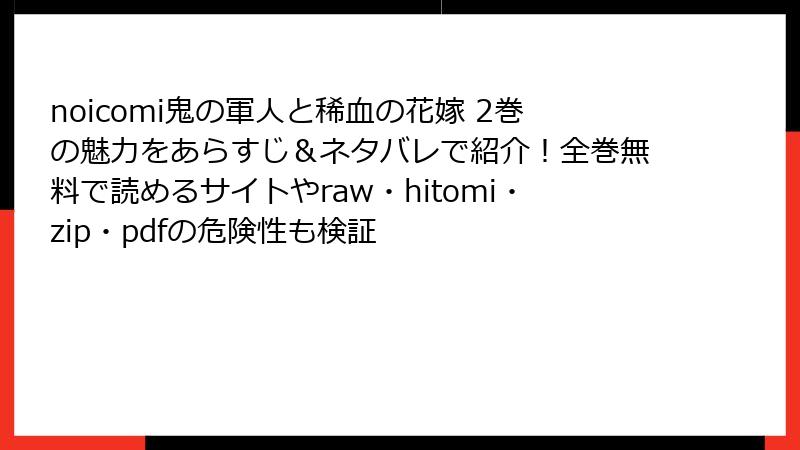 noicomi鬼の軍人と稀血の花嫁 2巻の魅力をあらすじ&ネタバレで紹介!全巻無料で読めるサイトやraw・hitomi・zip・pdfの危険性も検証