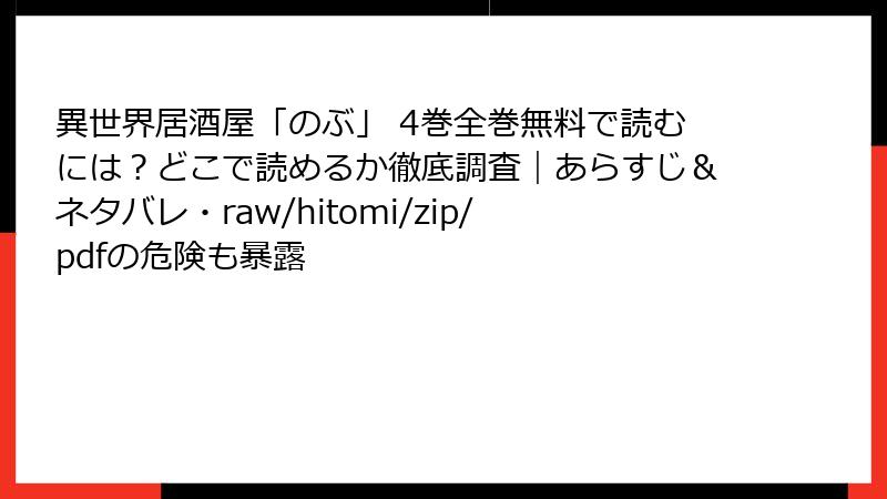 などの箇条書きのHTMLタグや、tableタグも使用してOK。ただし、リンクやURLは、絶対に、挿入しない。異世界居酒屋「のぶ」 4巻 この漫画・コミックの、あらすじを詳しく。単一の