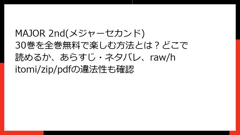 MAJOR 2nd(メジャーセカンド) 30巻を全巻無料で楽しむ方法とは?どこで読めるか、あらすじ・ネタバレ、raw/hitomi/zip/pdfの違法性も確認