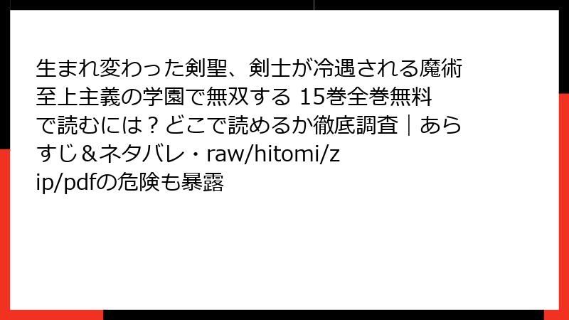 生まれ変わった剣聖、剣士が冷遇される魔術至上主義の学園で無双する 15巻全巻無料で読むには?どこで読めるか徹底調査|あらすじ&ネタバレ・raw/hitomi/zip/pdfの危険も暴露