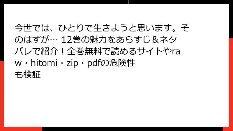 今世では、ひとりで生きようと思います。そのはずが… 12巻の魅力をあらすじ&ネタバレで紹介!全巻無料で読めるサイトやraw・hitomi・zip・pdfの危険性も検証