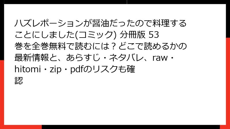 ハズレポーションが醤油だったので料理することにしました(コミック) 分冊版 53巻を全巻無料で読むには?どこで読めるかの最新情報と、あらすじ・ネタバレ、raw・hitomi・zip・pdfのリスクも確認