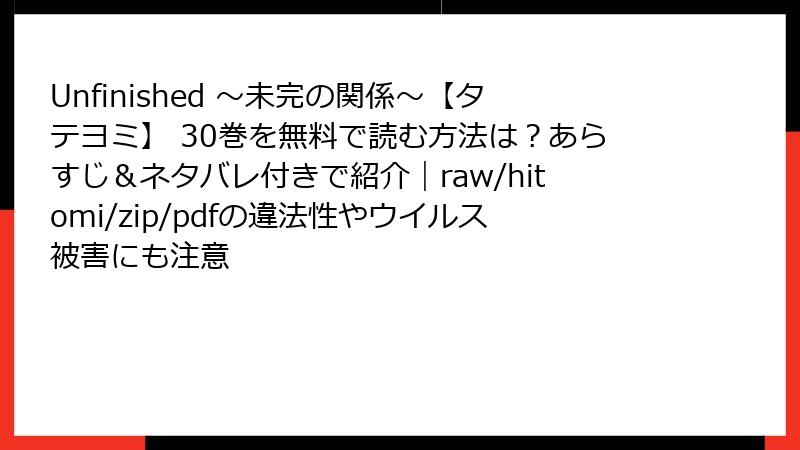 Unfinished ~未完の関係~【タテヨミ】 30巻を無料で読む方法は?あらすじ&ネタバレ付きで紹介|raw/hitomi/zip/pdfの違法性やウイルス被害にも注意