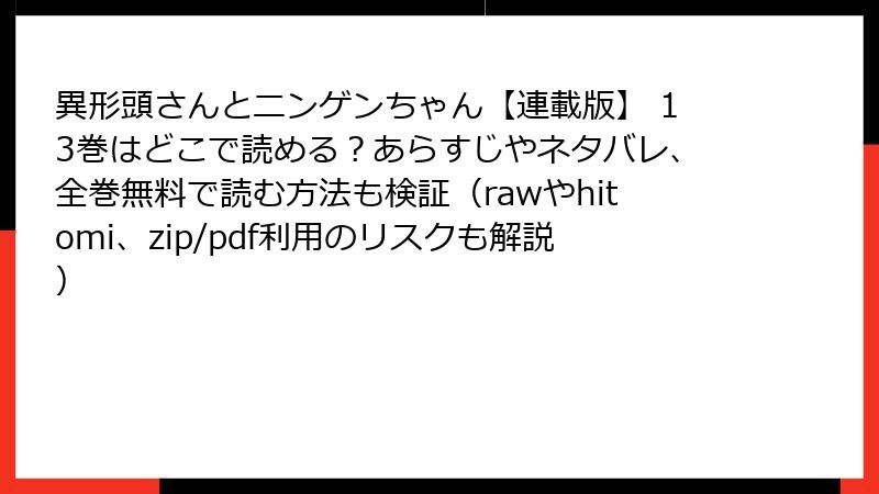異形頭さんとニンゲンちゃん【連載版】 13巻はどこで読める?あらすじやネタバレ、全巻無料で読む方法も検証(rawやhitomi、zip/pdf利用のリスクも解説)