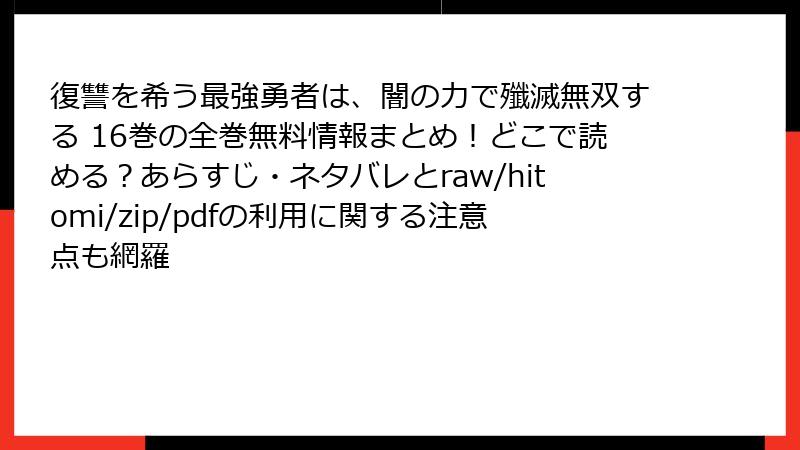 - 復讐を希う最強勇者は、闇の力で殲滅無双する 16巻 のネタバレ情報