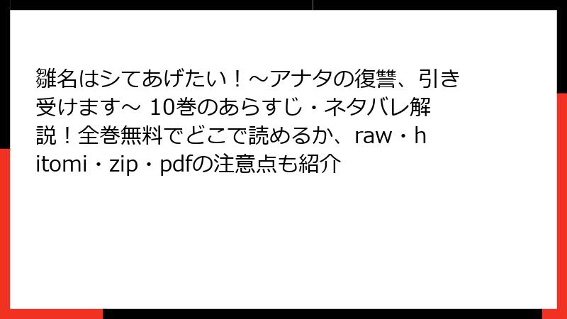- 雛名はシてあげたい!~アナタの復讐、引き受けます~ 10巻:リベンジドラマの配信一覧