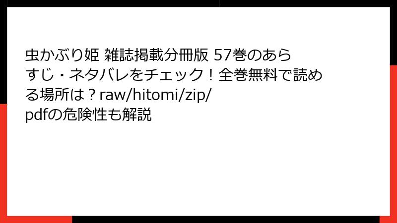 虫かぶり姫 雑誌掲載分冊版 57巻のあらすじ・ネタバレをチェック!全巻無料で読める場所は?raw/hitomi/zip/pdfの危険性も解説
