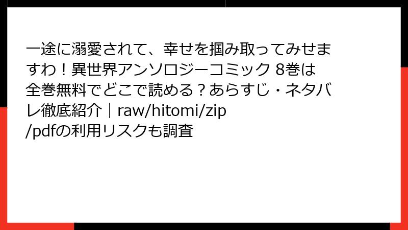 オルタンシアの死に戻りが、義兄の狂気と結びつく衝撃の8巻ネタバレ! 復讐劇が溺愛ラブに転じる過程を、核心まで暴露。幸薄から最幸へ、運命の逆転劇を追います。