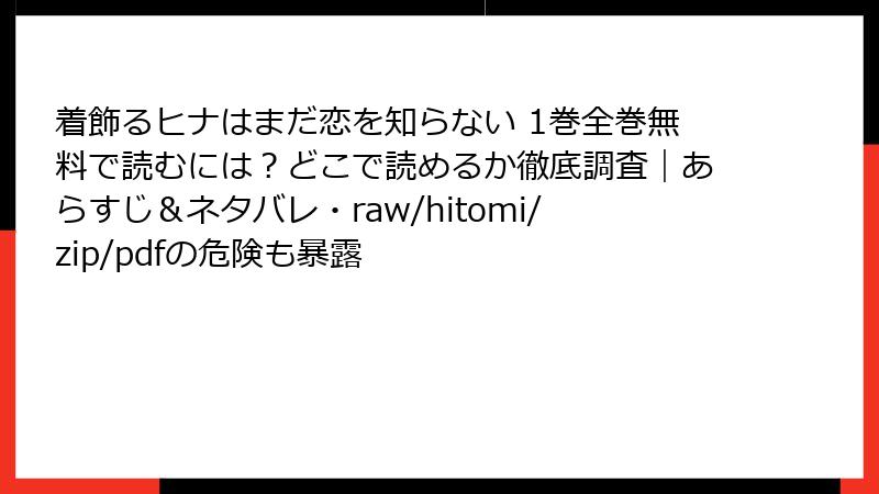 着飾るヒナはまだ恋を知らない:海賊版サイトで読むリスクを徹底解剖!raw/hitomi/zip/pdf/漫画バンクの闇