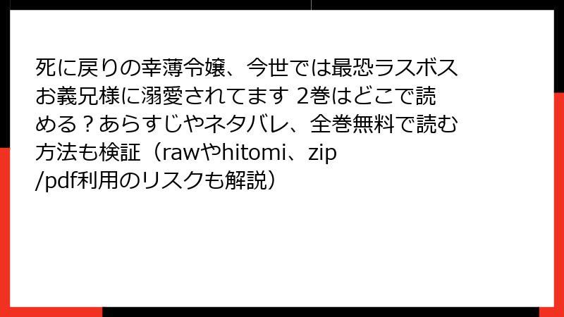 死に戻りの幸薄令嬢、今世では最恐ラスボスお義兄様に溺愛されてます 2巻はどこで読める?あらすじやネタバレ、全巻無料で読む方法も検証(rawやhitomi、zip/pdf利用のリスクも解説)