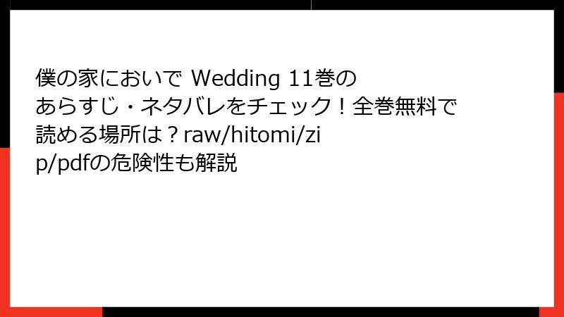 僕の家においで Wedding 11巻のあらすじ・ネタバレをチェック!全巻無料で読める場所は?raw/hitomi/zip/pdfの危険性も解説