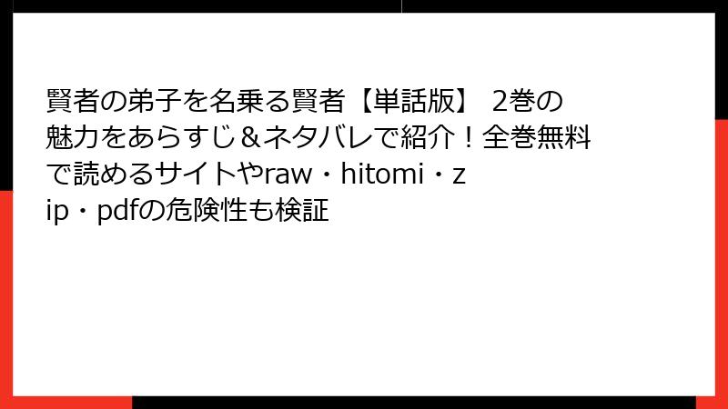 3. 【警告】『賢者の弟子を名乗る賢者』をraw・hitomi・漫画バンク・zip・pdfで読むと、本当にヤバいことになる理由